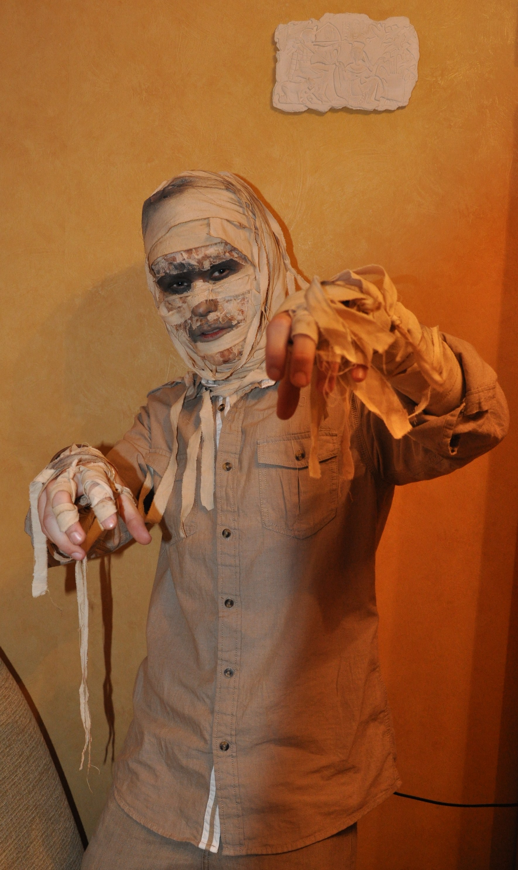 Stare przescieradło się darło więc skończyło jako bandaze dla mumii.
